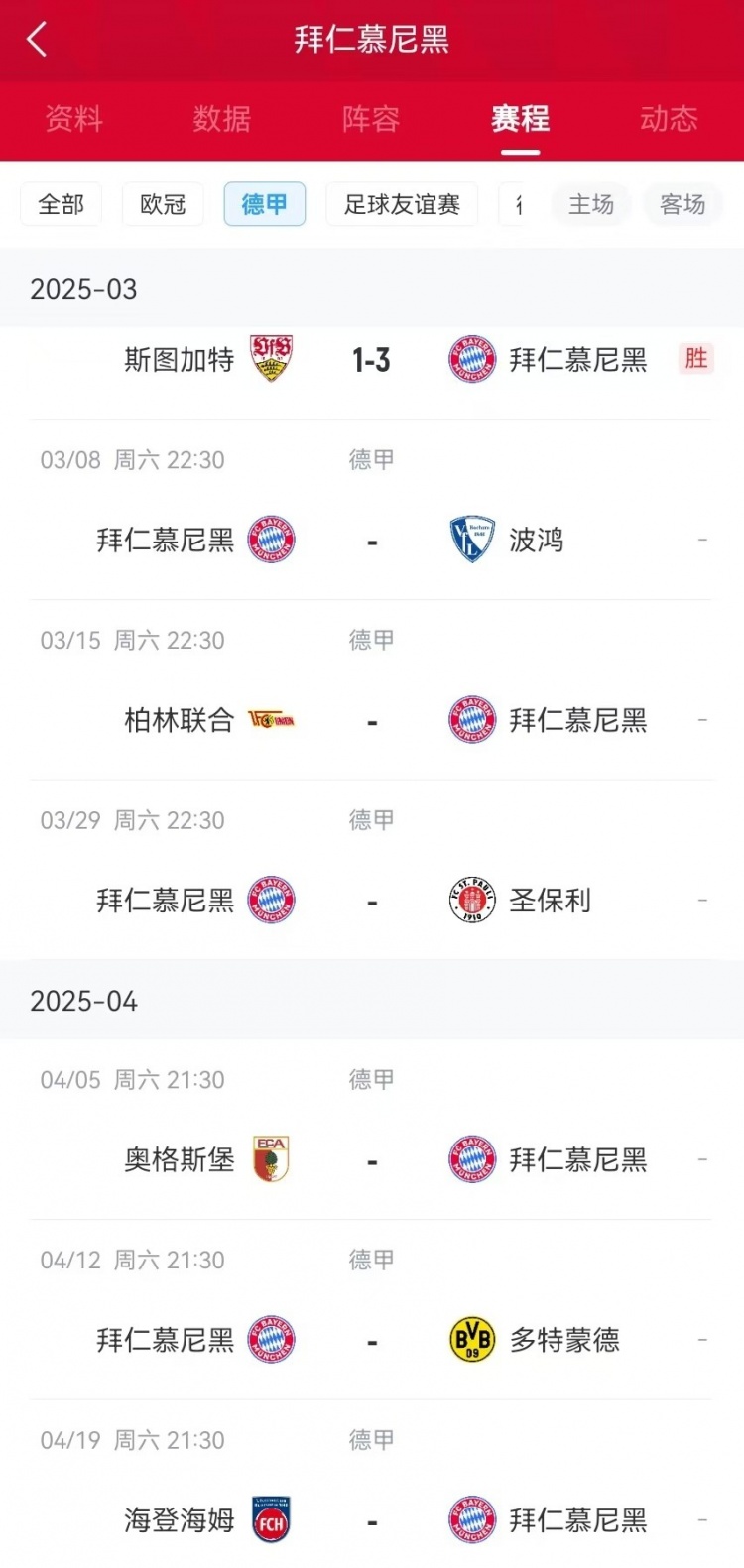 拜仁未來(lái)6輪對(duì)手聯(lián)賽排名: