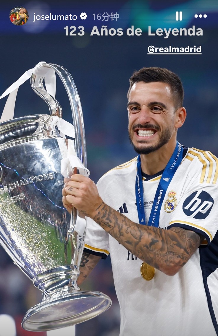 曾效力皇馬的34歲老將何塞盧更新社媒,曬出歐冠捧杯照并附文:123年的傳奇球隊(duì)。